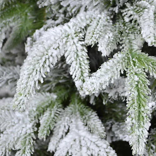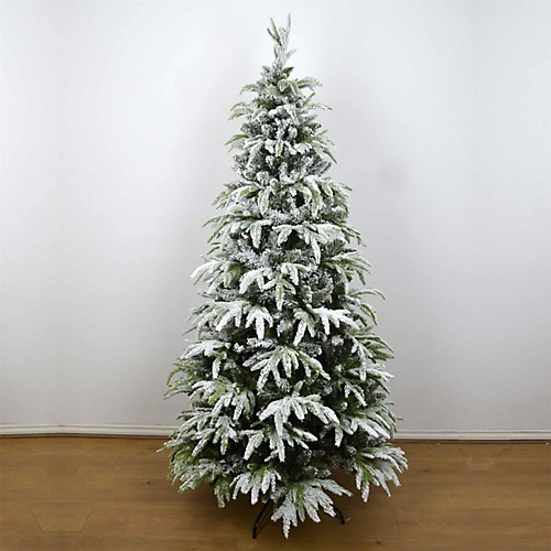 Flocked and frosted mix of traditional dark green PVC branch tips and super-realistic PE plastic moulded tips make this tree a real head-turner. It could easily pass for a freshly cut, snow-covered tree straight out of a winter wonderland.
