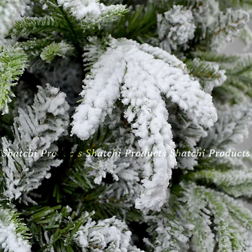A flocked and frosted mix of traditional dark green PVC branch tips and super-realistic PE plastic moulded tips make this tree a real head-turner. It could easily pass for a freshly cut, snow-covered tree straight out of a winter wonderland.
