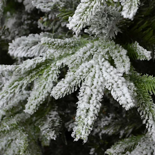 Flocked and frosted mix of traditional dark green PVC branch tips and super-realistic PE plastic moulded tips make this tree a real head-turner. It could easily pass for a freshly cut, snow-covered tree straight out of a winter wonderland.
