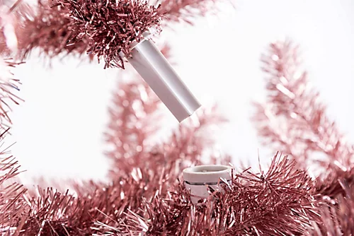 This Christmas try our unique rose gold colour Christmas tree to be an immediate eye-catcher in any setting, with a shiny pink tinsel design that breaks free from the traditional tree. Fluffs in an hour to create a full appearance and ample space to hang ornaments and other Christmas tree décor. Hinged branches and foldable stand let you easily assemble the tree.