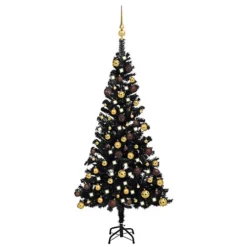 This black artificial Christmas tree forms the striking centrepiece of your Christmas decorations, creating a unique Christmas atmosphere! This Christmas tree, made of PVC material, is very lifelike in its shape and appearance. The steel feet add to its stability. The Christmas tree can be used again every year, making it a very economical choice compared to a real tree. Featuring energy-efficient LED lights, it lights up beautifully and creates a cosy holiday atmosphere. What’s more, decorated with the beautiful peak and balls, this Xmas tree will be eye-catching in your home.