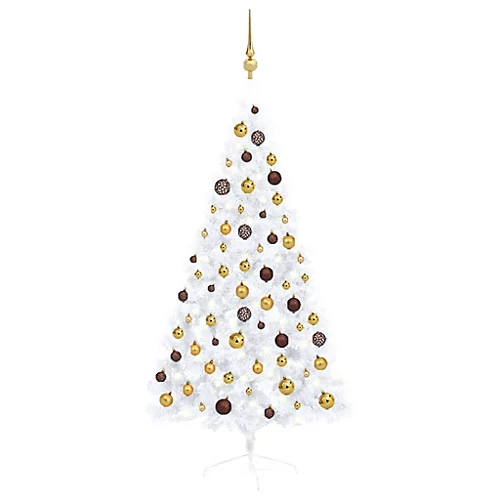 This artificial half Christmas tree forms the striking centrepiece of your Christmas decorations, creating a unique Christmas atmosphere! This beautiful Christmas tree, made of PVC material, is very lifelike in its shape and appearance. The steel feet add to its stability. This artificial tree can be placed against the wall to save more space. The Christmas tree can also be used again every year, making it a very economical choice compared to a real tree. Featuring energy-efficient LED lights, it lights up beautifully and creates a cosy holiday atmosphere. What’s more, decorated with the beautiful peak and balls, this Xmas tree will be eye-catching in your home.
