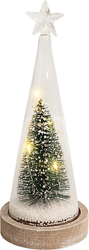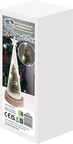 The light up Festive Glass enclosed Scene from St Helens Home and Garden is a beautiful festive addition to your window sill, table top or office desk. The scene has an authentic wooden base, star, festive scene with mini polystyrene balls to emulate snow and either a Christmas Tree or sprig of Mistletoe with berries. LED wire lights are wound around the scene to create a warm glow when lit, a glass dome encases the decoration. The scene would also make a thoughtful gift for your family and friends. 22cm in height. Simply insert 1x CR2032 batteries and you are ready to go, for added security the battery compartment is secured by a screw. Made from wood sourced from an FSC accredited manufacturer.