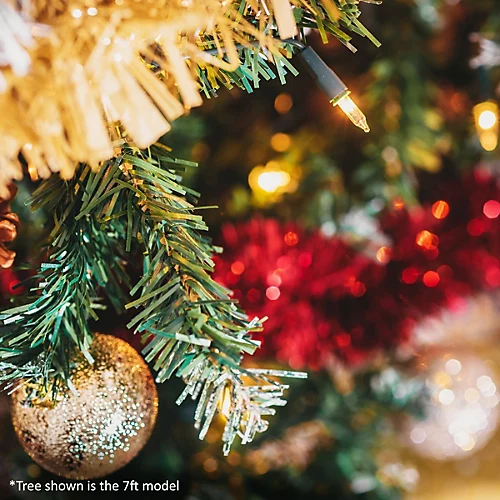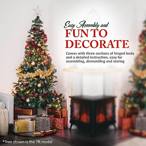 This pre-decorated artificial Christmas tree from the Christmas Workshop is natural green with bushy branches and thousands of authentic soft-bristle needles. Its full, fresh and realistic appearance is beautified by snowy tips and decorative cones. Because of the realistic artificial Christmas tree’s branches are bendable, you can shape, style and rearrange them to create a unique decoration. To ensure the snow-covered artificial Christmas tree remains sturdy, a non-scratch metal stand is also provided.