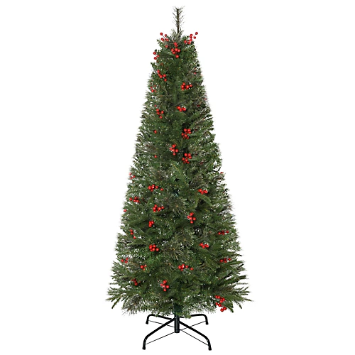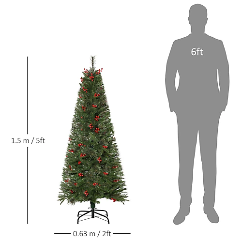 - UNLIT DESIGN, WITH FAUX RED BERRIES: This Christmas tree is a natural design. Dress up with decorations and lights how you want, or leave bare for a natural look.