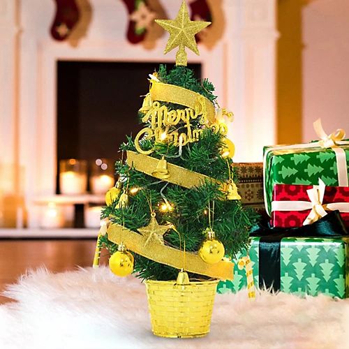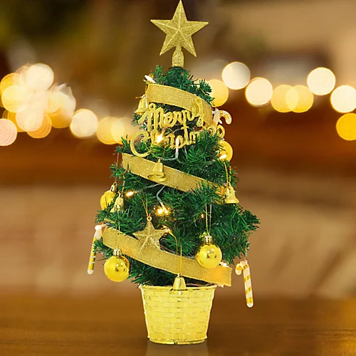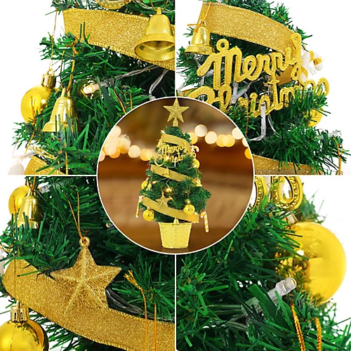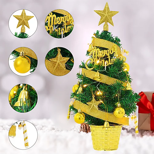 - Package Content: 1 x Mini Artificial Pine Tree, with Christmas Ornaments including 20 LED String Lights