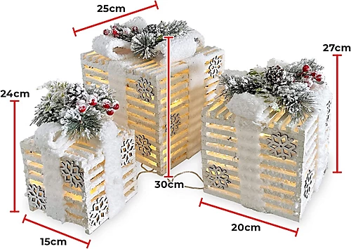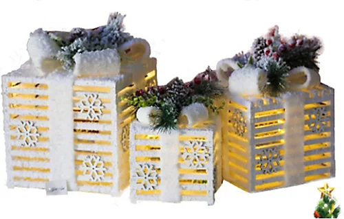 - LIGHT-UP GIFT BOX’S – This beautifully designed set of 3 light-up Christmas boxes are the perfect festive ornaments to provide both illumination and decoration to your living room and indoor spaces this Christmas time.