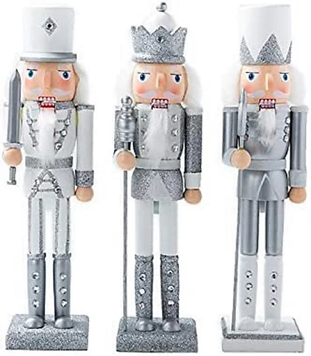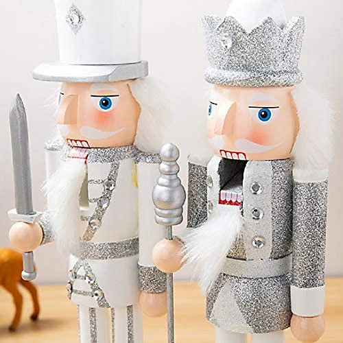 Nutcracker Christmas Wood Soldier 30cm/11.8in King Drum Ornament Glitter Royal Jacket Figures Crown Table Top Xmas Silver