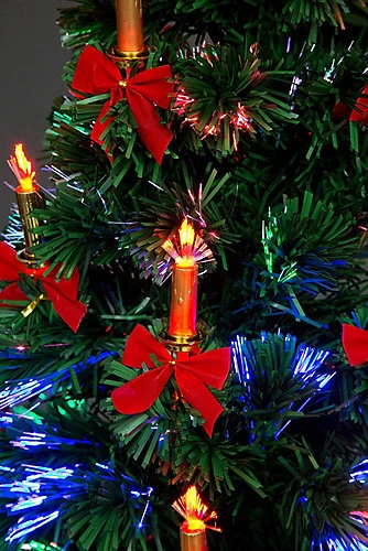 Candle & Bow Fibre Optic Tree: Beautifully decorated with candles & bows which gives you a festive holy vibes.