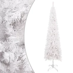 Berkfield Slim Christmas Tree With LEDs&Ball Set White 180 Cm