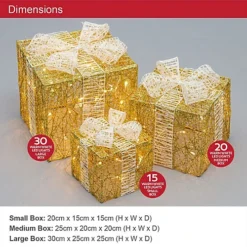 The Christmas Workshop 70989 Set Of 3 Light-Up Christmas Boxes With 65 LED’s & Gold & White Bow