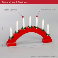 The Christmas Workshop 71179 Red Arched Wooden Candle Bridge With Candle Holders