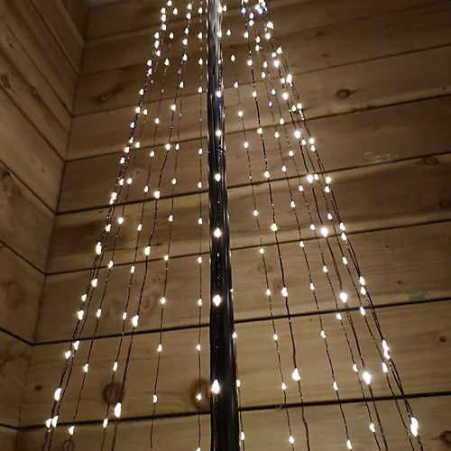 A modern interpretation of the classic Christmas tree shape, this indoor or outdoor lit decoration features vertical strands of LEDs, meeting at the top under a lit Christmas star.