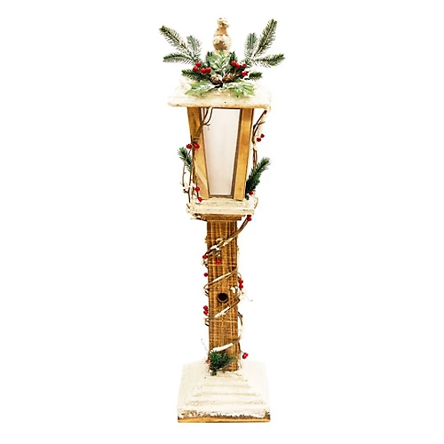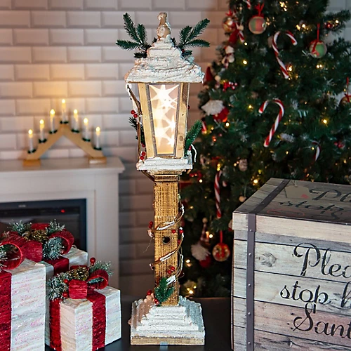 This spectacular wooden LED light up lamppost is a brilliant Christmas decoration to bring some light and life into your home this festive season! The lamppost is 85cm tall, making it stand out beautifully in your living room, conservatory, or to act as a centrepiece for your dining room table on Christmas day! The wooden Christmas ornament utilises 6 LED lights to give the lamppost its warm white glow. The key feature of this Christmas decoration is that the LED lights inside the ornament are sat on a circular motor and rotate 360° to send the bright light to every corner of your home. This is a wonderful feature and really adds to the festiveness of it all. The lights are powered by 2 x AA batteries that ARE NOT included with the lamppost.