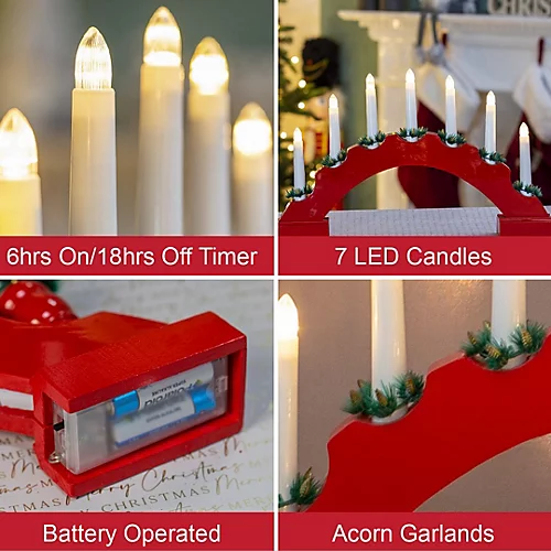 This red wooden Christmas candle bridge is an iconic festive feature that should be prominent in every house this year! This candle bridge emits a stunning warm white glow from 7 candles when the power is turned on. The candle bridge is finished in red, giving it a festive look, and will complement many of the Christmas decorations already in your home. The candle bridge measures 44cm W by 27cm H, making it a fantastic size to sit atop of the fireplace, in the window, or on the dining room table this Christmastime. The candle bridge is battery operated meaning it can be placed anywhere in your home to provide the most exquisite decorative illumination this festive season. PLEASE NOTE that the Christmas candle bridge requires 2 x AA batteries which are NOT included.